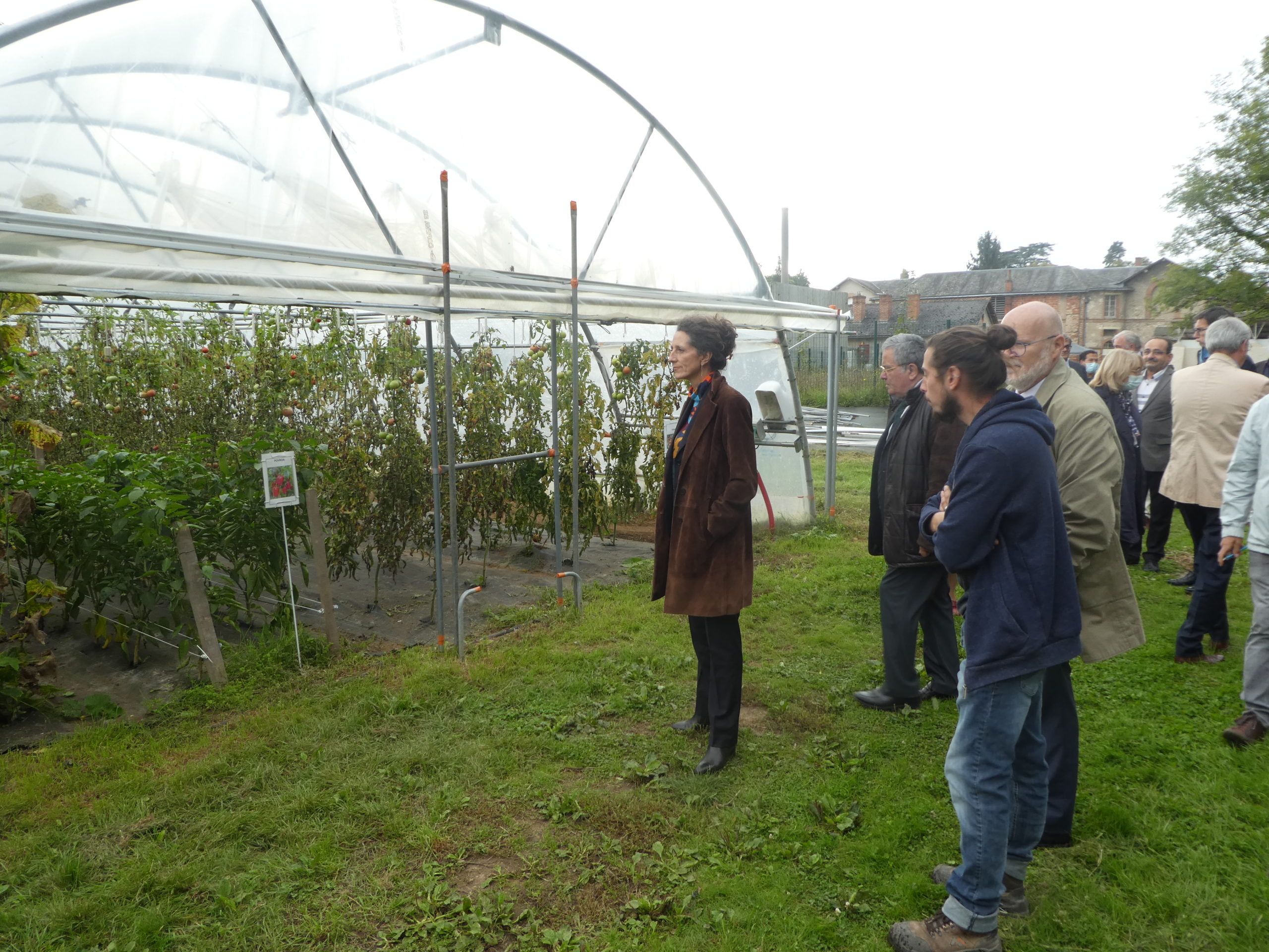Paul Grenot, Directeur de la Formation et de l’Insertion Professionnelle, les salariés du chantier d’Insertion « Les 4 saisons d’Atouts » et leurs encadrants techniques Guillaume Audry et Anthony Dale ont ensuite accompagné la délégation préfectorale et les invités pendant leur visite du chantier maraîchage Bio