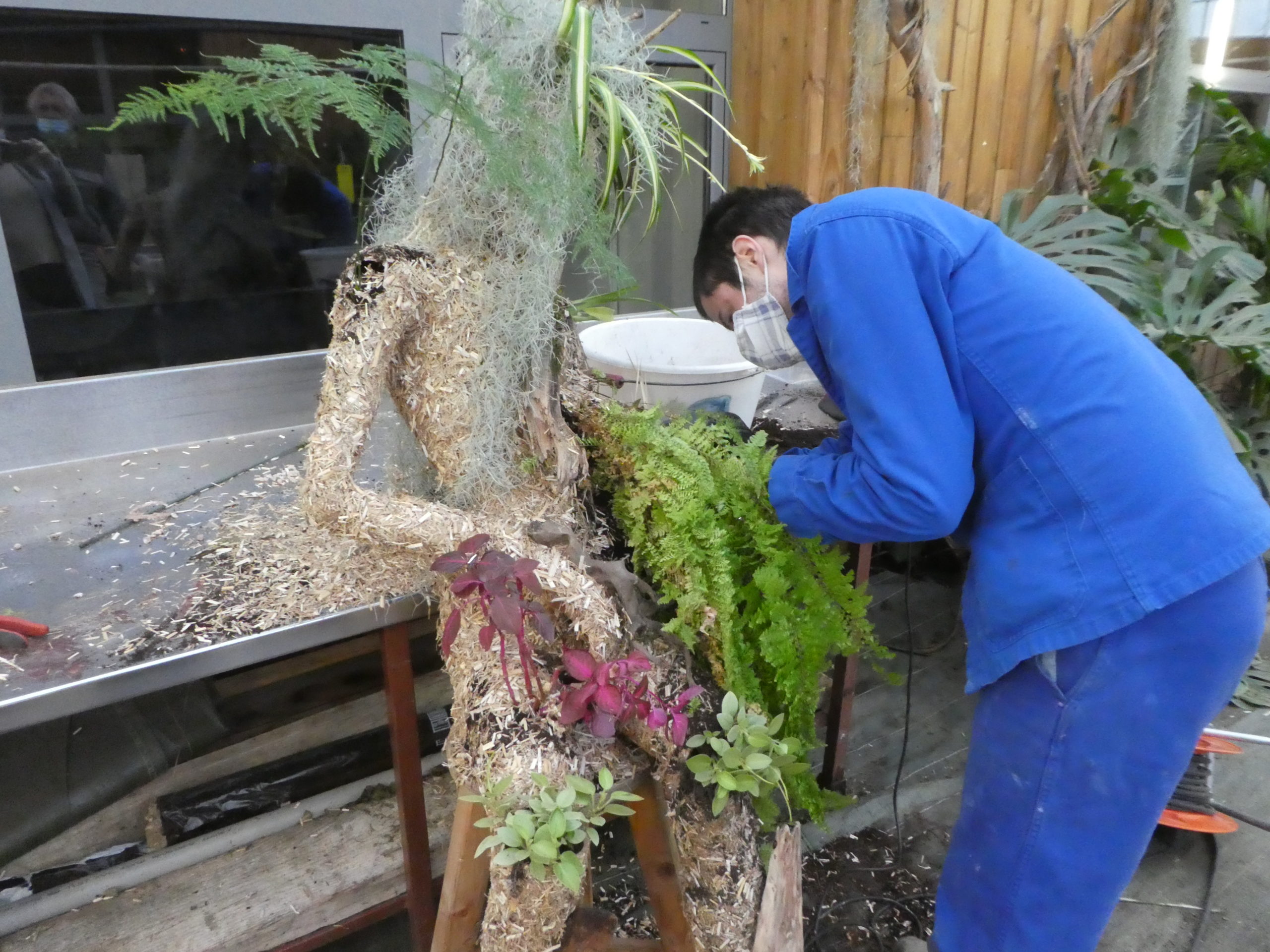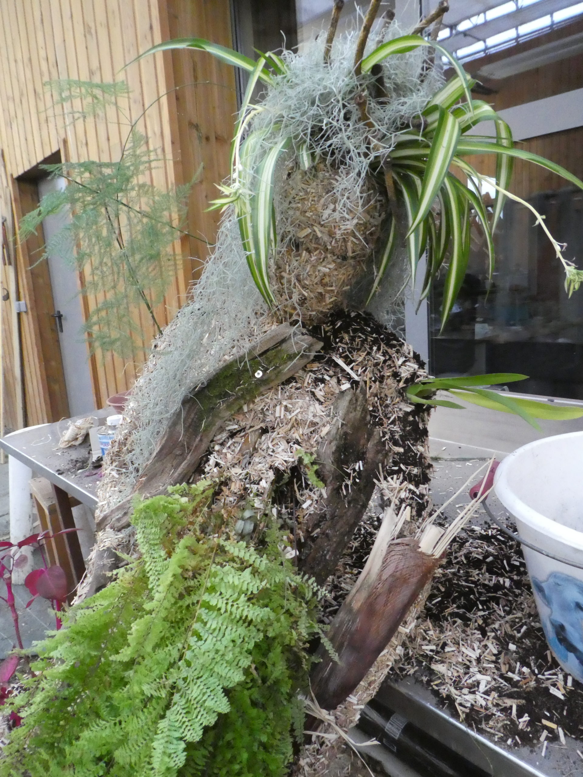 De jolies plantes épiphytes se mélangent à d’autres pour laisser place a une œuvre aussi créative que minutieuse.